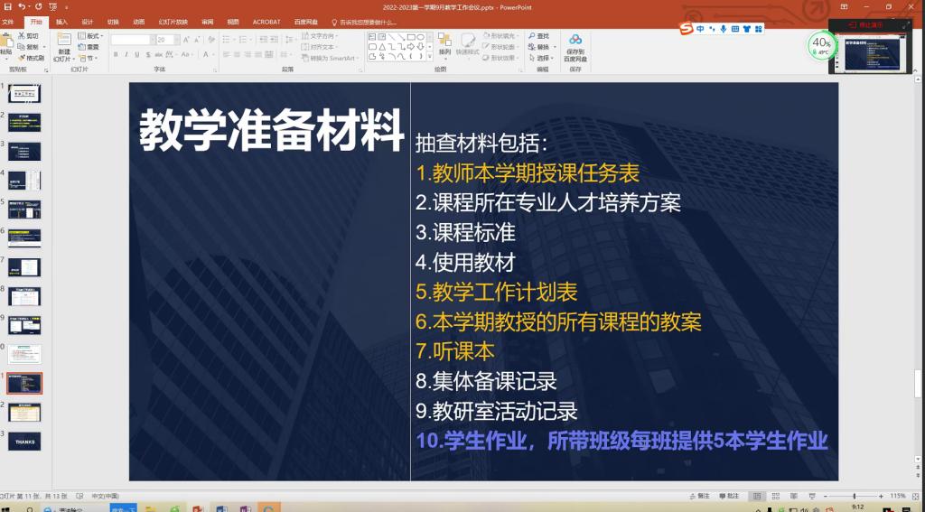 会议主要分成了三项议题,陆霞首先对本学期的教学工作进行了安排和布置,针对新生和老生开学时间不同以及军训等相关问题做了详细说明,要求教学秘书密切关注教务处通知,做好相关教学信息通知服务工作。随后陆霞介绍了新学期教学计划、教学形式以及教学材料的准备工作,要求教师们做好在线教学资源的上传和教学台账的留存。张磊副主任就下学期中心工作做了详细说明,介绍了公司领导班子调整情况并传达了公司相关文件精神,要求全体教师围绕二十大和双高校建设两大主题,以深化综合改革为抓手,在工作中勇于创新,培养解决问题的能力。张磊随后介绍了公司暑期的相关工作以及本学期信息化建设的构想:公司将进行网络改造,相关业务系统上线等。最后耿杏老师就智慧职教平台对中心老师做了细致的培训。