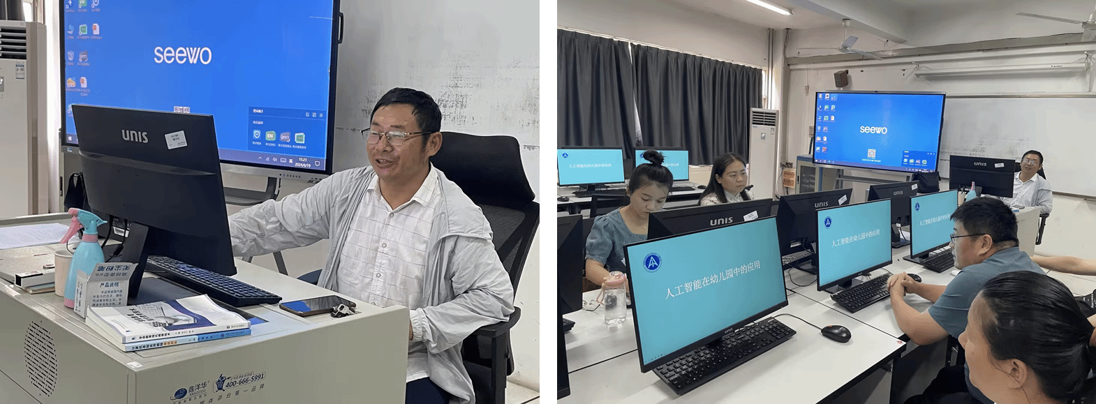 朱老师以“人工智能在幼儿园中的应用”为题,从园所安全管理、幼儿健康监控、幼儿活动管理等几个方面,展示人工智能赋能幼教行业的示范案例,并就人工智能时代背景下的教师角色转变提出自己的建议。