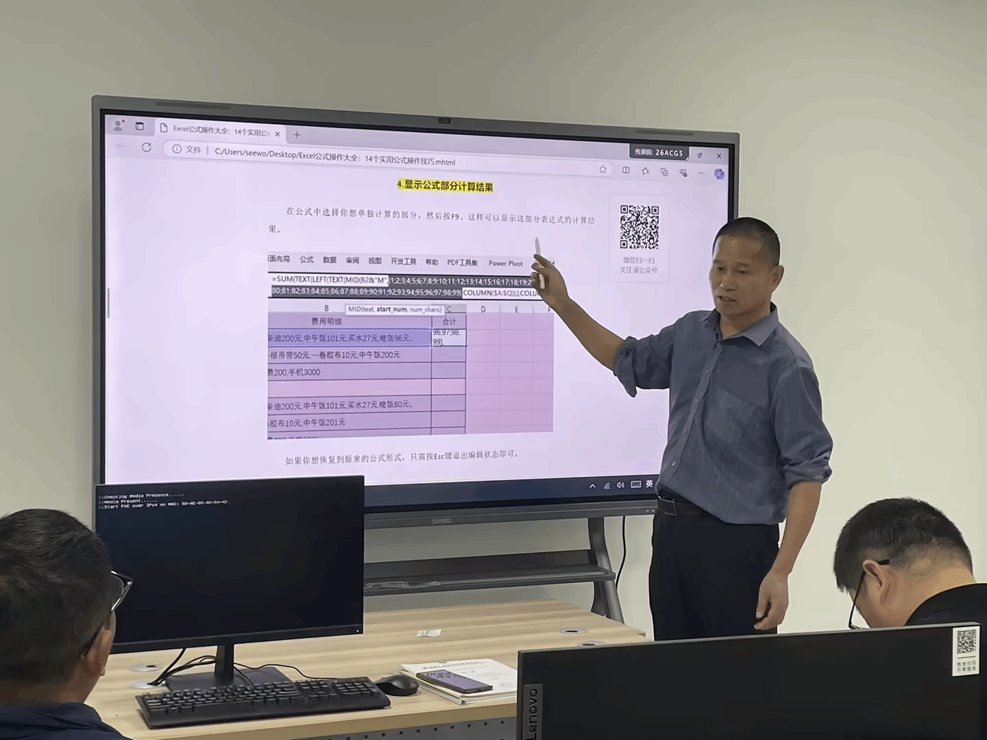 本次教研活动中,蔡成军老师首先围绕 Excel 公式操作进行主题分享。他深入讲解了数据计算与分析中函数与其他功能的结合运用,也详细拓展了诸如 SUM、AVERAGE、VLOOKUP 等常用函数的应用场景以及教学案例。