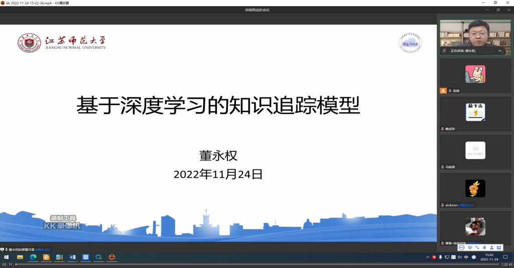 为进一步提高师生的学术素养,激发教师的科研创新活力,营造良好的学术氛围,根据《关于筹备XC体育2022年度学术活动周的通知》的文件精神, 信息与网络安全处(信息网络中心)于2022年11月24日特邀江苏师范大学智慧教育公司董永权教授开设了主题为《基于深度学习的知识追踪研究》的线上讲座,讲座由副处长陆霞主持,全体教职工参加讲座。