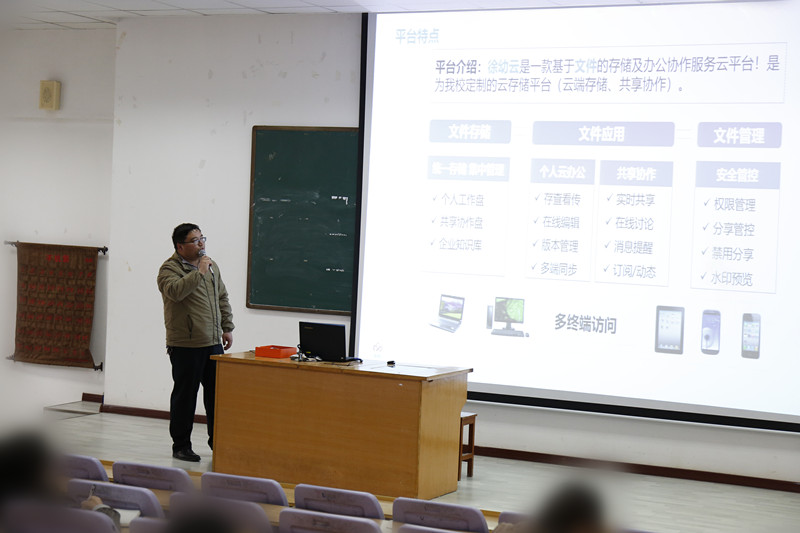 为加快教学信息化发展,进一步提高公司教师信息化素养和水平,4月22日下午,在碧螺校区教学楼2楼阶梯教室,《计算机基础》教学团队的两位老师为全校教师开展了一场信息化技能培训,培训的内容是企业微信的操作和徐幼云的使用。