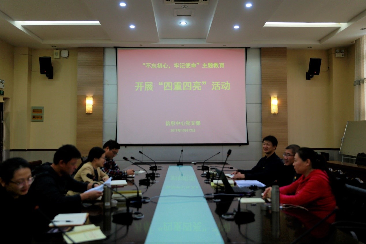 10月12日下午,信息网络中心召开“不忘初心,牢记使命”主题教育活动,聚焦“四重四亮”:重读入党志愿、重温入党誓词、重忆入党经历、重问入党初心;党员亮身份、服务亮承诺、工作亮标准、担当亮作为。信网中心全体党员参加,支部书记张延伟主持会议。