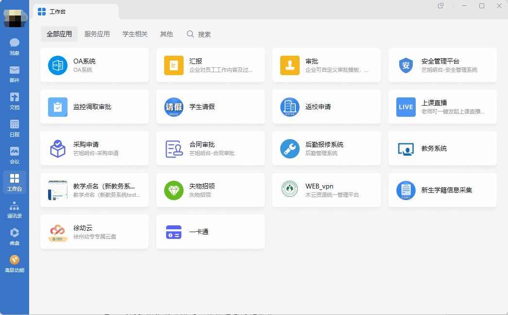 继企业微信与徐幼云、教务系统对接,实现移动端教研平台的互联互通,持续优化企业微信平台的工作台功能。此项工作充分发挥校企业微信的互动功能与流程管理优势,完善入学、复学、退学、采购等相关流程,使师生可以方便地办理相关业务,让数据有效流动,人员少跑腿,提高了工作效率。