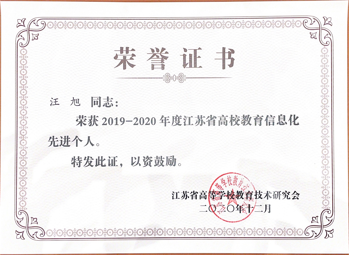 2020年12月1日-2日,江苏省高校第二届信息技术与教学促进大会(ITET2020)暨江苏省高等公司教育技术研究会2020年学术年会在南京召开。本次会议主题是:“融合与创新:新时代的信息技术与教学改革”。会议表彰了2019-2020年度在信息化建设工作中表现突出的单位和个人。公司荣获“江苏省高校微课教学比赛优秀组织单位”称号,信息网络中心汪旭同志荣获“江苏省高校信息化建设先进个人”称号。