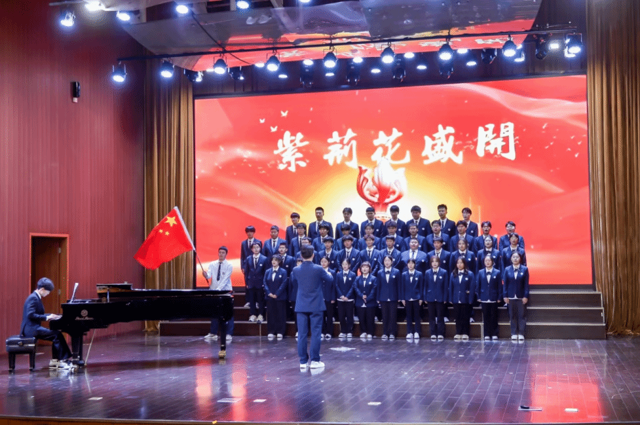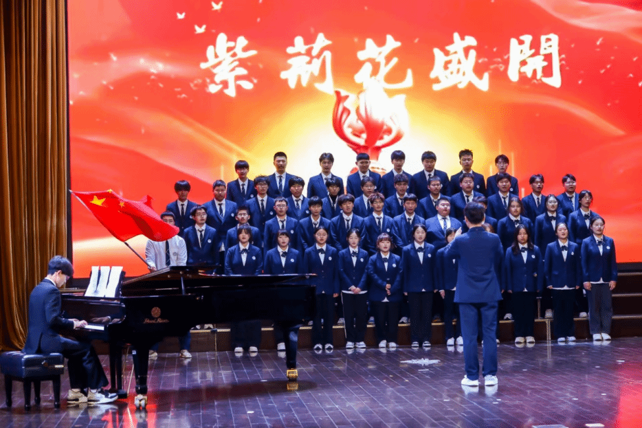 决赛中,公司员工第二个登台。舞台上,同学们身着整齐校服,面带自信微笑。邱晓晨同学钢琴伴奏,音符灵动;唐浩文同学指挥若定,动作有力。随着指挥手势,全体同学以饱满热情唱响《紫荆花盛开》,歌声整齐洪亮,尽显青春活力与团结力量,收获台下观众的热切关注。